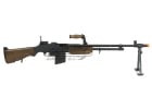 The M1918 SLR is officially licensed by Ohio Ordnance Works and is a World War II based squad weapon. For the airsofters, reenactors and collectors the SLR is a great buy due to its steel and aluminum with faux wood body. The M1918 SLR gun built like a tank on the outside and the inside. The steel bipod is adjustable and can lock into place. The M1918 is weighs close to 14 pounds and is equipped with a metal front and rear sling loop. The gearbox is like Echo 1's Ohio Ordnance Works M240B and uses the quick change spring guide so you can take the stock FPS that is 410~ and drop it to a lower fps if needed. The M1918 uses a 8mm bearing gearbox using steel gears and a nylon piston. A MOSFET is also built in with fuse and low resistance wires. The M1918 SLR is solid built gearbox joined with a AK styled hop up unit and MadBull bucking. Installed is a long 509mm brass inner barrel ready to be used out in the field.
