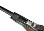The WE Full Metal Luger (Short) is a replica of the famous semi-automatic pistol used by the German military during WWI and WWII. WE has done a fantastic job replicating their airsoft pistol to look, feel, and function like the real thing. The magazine cannot be loaded or into the gun unless the action is back or has been cocked back. Also, the magazine cannot be released unless the action has been cocked back. The rear sight is adjustable for distance. There is a functional safety and magazine release button. The handle is made of a durable ABS plastic but the rest of the gun is full metal, which gives a nice sound when fired.