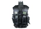 A very nice, comfortably-fitting tactical vest overall. I bought this vest from this site and since I've gotten it adjusted to my physique, it hasn't disappointed. Coming stock with 6 mag pouches (each holding up to 2 mags each), you can potentially hold up to 12 M4-style mags with ease. It also comes with two utility pouches on both pectorals, one having shotgun shell holders in case you have a need for them (both have integrated Velcro to attach patches). The back of the vest is completely covered with M.O.L.L.E. to accommodate shotgun scabbards, hydration packs, and more. Finally, with straps on the obliques and the shoulders, a fully adjustable-belt, and buckles and a zipper to keep everything secure, it can provide the best fit for almost anyone using it.