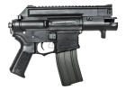 The ARES Amoeba AM03 is another well built airsoft gun. It's compact design serves a great purpose in close quarter environments. Externally, the Amoeba features a polymer upper and lower receiver. The unique design features an engraved logo on the left side. Internally, this gun contains ARES well known internals. Polycarbonate piston with full metal tooth rack, steel gear set, ported polycarbonate piston head, and electronic control unit. The electronic control unit is programmable to be switched to burst fire or semi only. The AM03 is an amazing piece of CQB equipment, perfect for those who are looking for a compact m4 to tuck away and keep hidden, also makes a great back up for a sniper to get out of a sticky situation.Specifications: