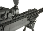 The M14 has been brought back into service with the U.S. Military for issue to designated marksmen. Designated Marksmen operate on a unit level to fill the gap between standard riflemen and snipers. Although the venerable M14 has proved adequate in terms of accuracy it has fallen short in others; without the ability to mount the now standard accessories such as flashlights, lasers, optics, and a bi-pod. To solve this problem the next logical step was the addition of a R.I.S. to the M14. Aside from the ability to mount numerous different accessories the M14 R.I.S. has a retractable stock that allows the user to adjust for the length of pull, which is especially important if the user is wearing body armor. The Echo 1 M14 R.I.S. features a shortened outer barrel with a redesigned M14 flash hider. Echo 1 is the first company to make the M14 R.I.S. full metal and affordable for all players.