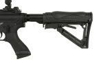 The G&G GOS-V1 Retractable Stock for G26 & M4 Series is a replacement stock meant for the G&G GR4 G26. It features a comfortable rubber cheek rest, friction lock design, adjustment lock, quick detach sling point, and CR123-sized battery compartment. The rear of the stock is also set up to be able to accept the addition of a buttstock pad (not indluded).