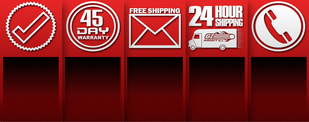 All merchandise purchased from AirsoftGI which will be covered under the AirsoftGI.com warranty policy for 45 days.*