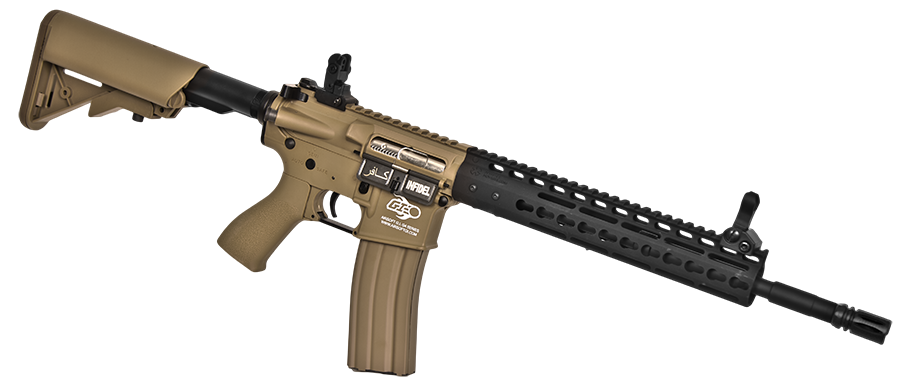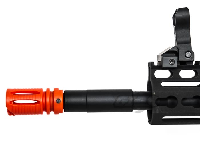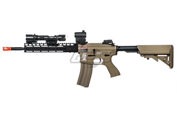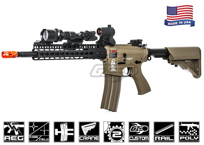 Never before have we built a gun with such a high value per dollar ratio. The base gun is a special Combat Machine Blowback M4 with a crane stock that's wired to the back. The brilliant techs at Airsoft GI have fitted a Metal outer barrel, Official License Noveske Free Float RIS. As a result, the final product is a unique rifle with flush look and sturdy front end. On top of this G4 Custom is the LIGHTEST in our line. We've worked out a special program with Combat Machine to build us a special M4 with a crane stock, sling mount, and the wires to the back, so we can eliminate the need for a PEQ box and keep a clean look. The Combat Machine was carefully chosen for their high quality, reliability and incredible value. We've dropped the G4 straight onto the ground from 8ft and 9ft with no visible damage to the body, this is the strongest plastic receiver on the market. Additionally, with the innovation and imagination from the Airsoft GI technical team we are building some of the highest quality guns that money can buy.
