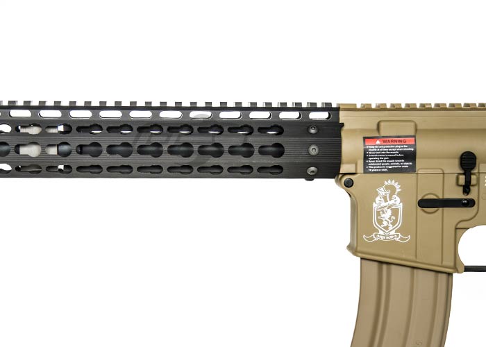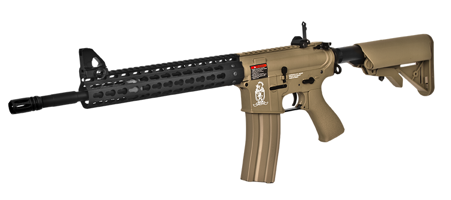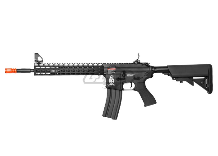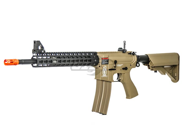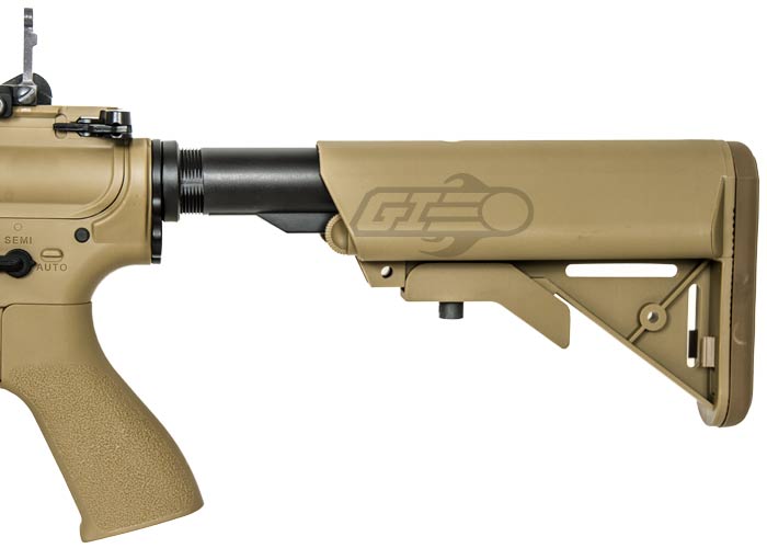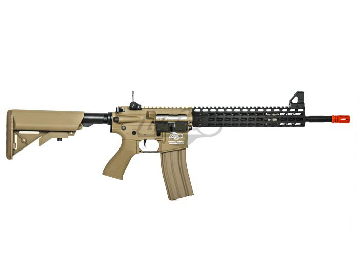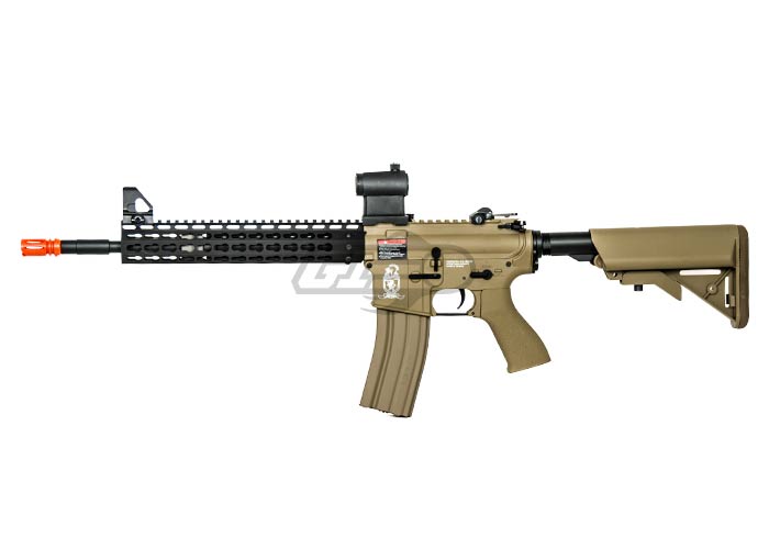 Never before have we built a gun with such a high value per dollar ratio. The base gun is a special Combat Machine Blowback M4 with a crane stock that's wired to the back. The brilliant techs at Airsoft GI have fitted a Metal outer barrel, Officially Licensed Strike Industries 11" Megafins Keymod style Modular Free Float RIS. As a result, the final product is a unique rifle with flush look and sturdy front end. We've worked out a special program with Combat Machine to build us a special M4 with a crane stock, sling mount, and the wires to the back, so we can eliminate the need for a PEQ box and keep a clean look. The Combat Machine was carefully chosen for their high quality, reliability and incredible value. We've dropped the G4 straight onto the ground from 8ft and 9ft with no visible damage to the body, this is the strongest plastic receiver on the market. Additionally, with the innovation and imagination from the Airsoft GI technical team we are building some of the highest quality guns that money can buy.