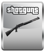 The shotgun is a strong weapon usually found in police cars within the game. They are used best for close combat with a dense amount of enemies and quick destruction, dealing hits with a large area of effect. Airsoft GI featured a variety of styles for these guns, including a few models that shoot three BBs per shot.