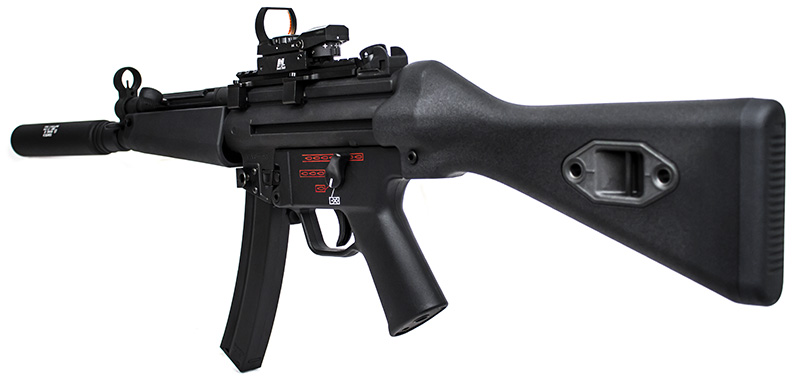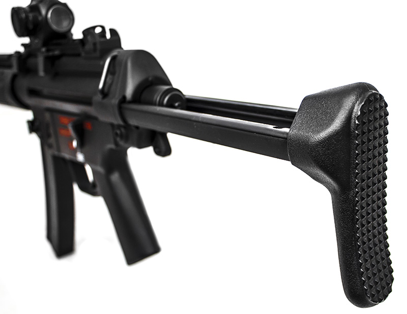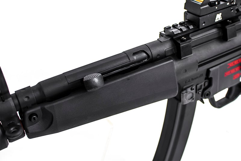 Currently, Airsoft GI is carrying two versions of this particular VFC MP5. The MP5A4 variant features a full stock, which is the iconic design used by many counter terrorist teams throughout the world. The MP5A5 features a collapsible stock which makes it great for close quarter fighting. For VFC, both of these guns are very reasonably priced, as an equivalent ambidextrous M4 would cost much more than this.