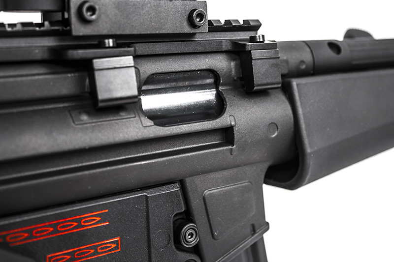 The H&K MP5A5 by VFC fully licensed through Umarex is one of the few licensed MP5 variants available in the market. The H&K MP5 is one of the closest replicas to the real gun counterpart. Externally, the H&K MP5A5 contains a retractable stock with a sling mounting point on the left side. The lower receiver is also constructed of polymer along with the ambidextrous fire selector. A cool feature to point out, the upper receiver is constructed out of stamped steel just like the real gun counterpart. Towards the top of the upper receiver are licensed trademarks as well as a unique serial number. The charging handle is manufactured out of steel to prevent braking when accessing the hop up unit. Internally, you will find high quality gearbox from VFC. VFC has one of the best reputations in the airsoft industry for high build quality and materials. Most of the gun is made from high quality aluminum so that they are durable and lightweight. Another unique feature that you would find in the H&K MP5 is the mechanical 3 round burst system. Overall, this is an amazing airsoft gun internally and externally. The high quality externals and performance internals are optimized for the airsoft player as well as for those who demand the best for a training rifle. |