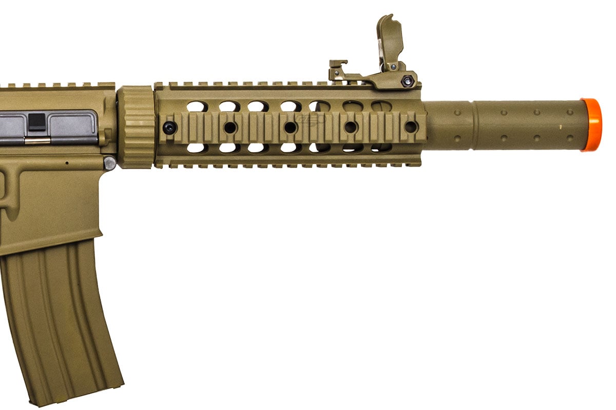 | Specifications: Model: LT-15 Muzzle Velocity: 370-390 FPS Muzzle Velocity: 330-345 FPS (Low FPS version) Magazine Capacity: 300 rounds Color: Black & Tan Package Includes: Gun, Magazine, Battery, Charger |