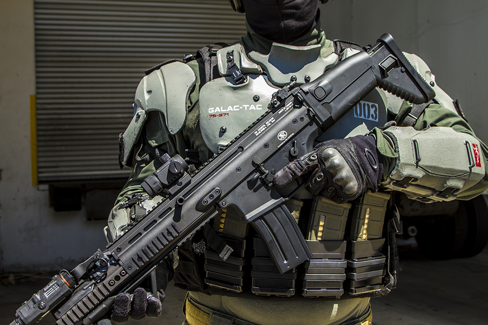 VFC has taken their popular SCAR SERIES, which has been referred to as the best replica of the SCAR PLATFORM currently on the market, and made it even better. The VFC Full Metal FN Herstal SCAR SERIES Airsoft Guns are now fully licensed by FN Herstal of Belgium, and is arguably are most realistic SCAR replicas on the airsoft market. The VFC SCARs maintain many of the same features and controls as the M4/M16 series, so the transition for users is simple. In addition, they have many improvements over the M4 and the M16. The lower receiver is constructed from sturdy polymers to reduce weight. The magazine release and selector switch are ambidextrous, and the bolt release is functional. Not only is the stock retractable it is side folding and has an adjustable cheek rest, and unlike the many other brands, the wires are not exposed when the stock is folded.