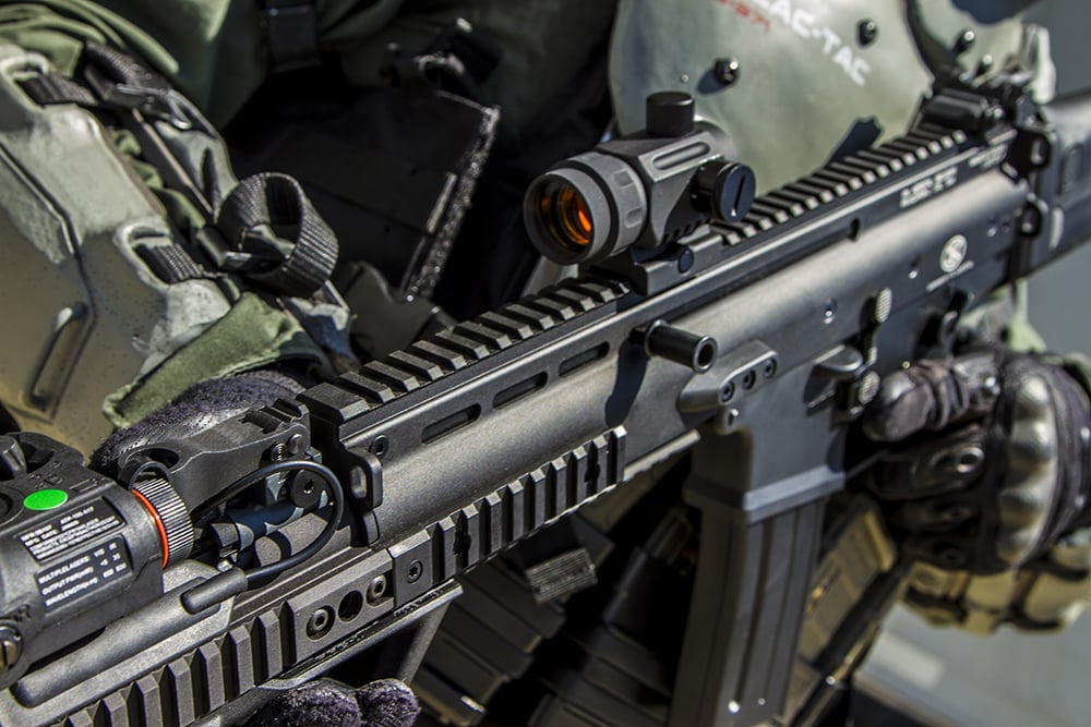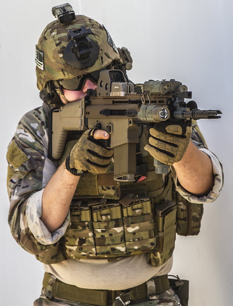 As if all of that wasn't enough, An integrated and uninterrupted rail runs along the top of the receiver giving the user plenty of room to mount optics and night vision equipment. In addition, there is a rail on the underside of the handguard and two removable rails for each side of the handguard that enable the user to mount accessories like a flashlight or vertical grip. VFC has really outdone themselves on this series.VFC currently has 4 models in the series: the ssr or Sniper Support Rifle isused to provide cover and security for the long range sniper rifleman. A gun like this is a true asset to any squad, especially for their snipers. The MK16 CQC and MK17 CQC models offer a shorter barrel length for tighter quarters in combat. Lastly, the MK17 STD is the standard SCAR platform we all know and love. Each model is available in black or tan.