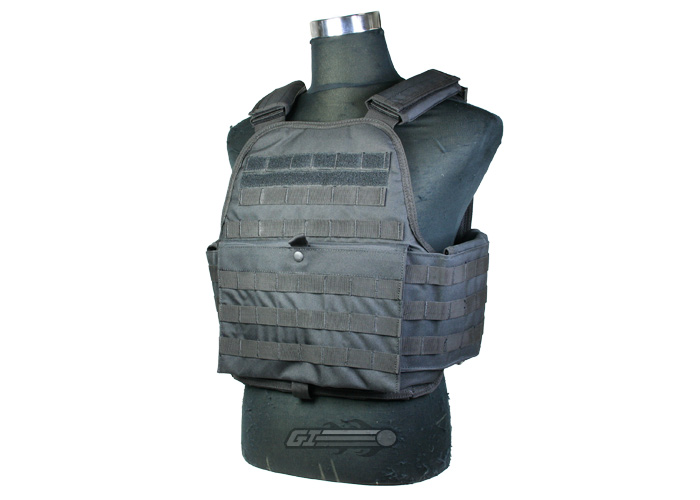 As their name implies, the main purpose of plate carriers is to carry ballistic plates. Plate carriers do not offer any ballistic protection by themselves; however, with a ballistic plate inserted in the plate carrier it does offer the level of protection stated on the ballistic plate. For Airsoft purposes a plate carrier does offer very good protection against BBs. Plate carriers are most popular amongst Mil-Sim airsofters because majority of plate carriers are equipped with MOLLE. MOLLE or Modular Lightweight Load-carrying Equipment is the standard system for attaching pouches on to the plate carrier. |