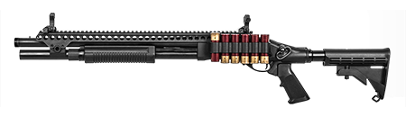 Take your game play to the next level with the shotgun series! Powered by green gas, this all metal shotgun is capable of firing between three and six BB's at one time by manipulating a switch near the ejection port. The scatterguns have three inner barrels with individual fixed hop up units, giving you great CQB range as well as a decent amount of BB spread.