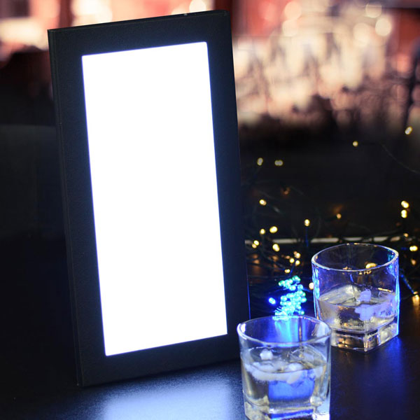 This Single Panel Backlit Menu Cover holds 5.5"x11" sheets, is equipped with LED lighting to illuminate the menu. It is ideal for using in bars and fine-dining establishments, as the LED illuminated presentation creates a unique ambience to which diners will be drawn. The illuminated covers are designed to last between 3 and 6 hours of use when continuously opened during a dining service. We recommend frosted film paper for the best presentation.