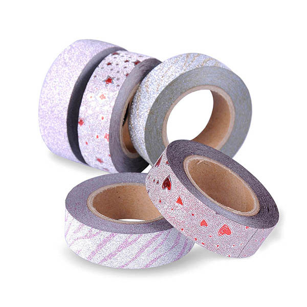 5 Rolls 0.59" x 32.8' (15 mm x 10 m) Glitter Bling Japanese paper Washi Tape for Scrapbooking, Masking, Painters, Colored Duct,Party Collection, Decoration. Great for Valentine's Day, Xmas themed decorations. Washi tape Features High quality, Long time color bright & Strong adhesiveness, and gives you variety without excess.