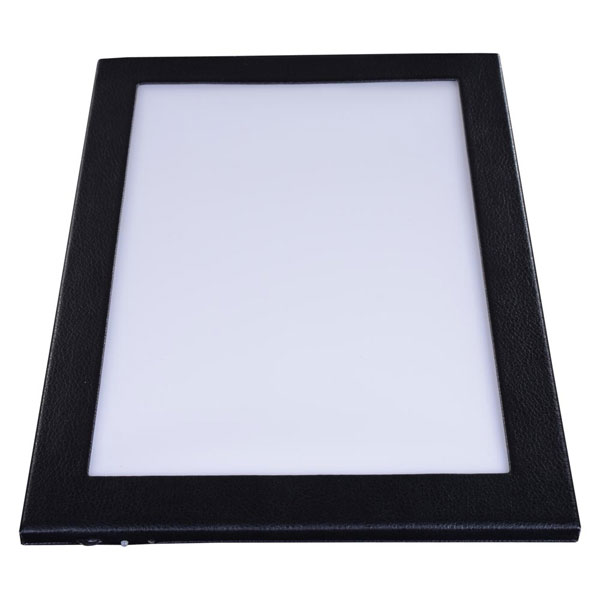 This Single Panel Backlit Menu Cover holds 8.5" x 11" sheets, is equipped with LED lighting to illuminate the menu. It is ideal for use in bars and fine-dining establishments, as the LED illuminated presentation creates a unique ambience to which diners will be drawn. The illuminated covers are designed to last between 3 and 6 hours of use when continuously opened during a dining service.