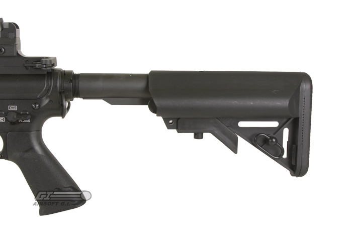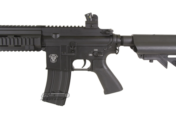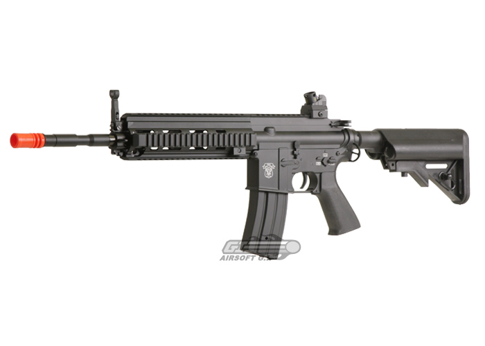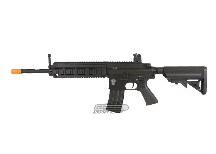 Up until now the only way to get an airsoft replica 614 was to purchase an expensive high end gun or build one from a kit (an even more expensive option). The AGM 614 is affordable but has all the features that make the 614 unique. It has a free floating RIS handguard that closes the traditional gap between the receiver and the standard handguard of the m4. The rear sight is removable and the front sight flips down out of the way when using optics. However, it has a retractable crane stock that can be adjusted for the users comfort and houses the custom battery pack.. It is also compatible with most major brands of standard and high capacity after market magazines. This airsoft gun from AGM is an affordable option for anyone who likes the design of the 614.