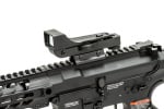 Internally, the rifle makes great us of its new High Torque motor, shooting at over 27 RPS when paired with a 20c 11.1v lipo battery. Improving its precision is a Modify Hybrid 6.03mm tightbore inner barrel. With this improved air compression you can also expect the FPS to increase slightly as well. And of course, the new rotary style hop-up chamber makes dialing the hop of the BB a breeze.
