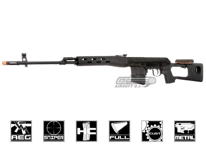 I got this gun a while back as it provided me with just what I wanted. An SVD (my personal favorite gun of all time), semi-auto feature, and a quality, beautiful rifle. I am very pleased with everything there is to it, and I've even done a little modification myself to make it that much better. This gun works great with .30g bbs and allows for quick followup shots like a true DMR should.