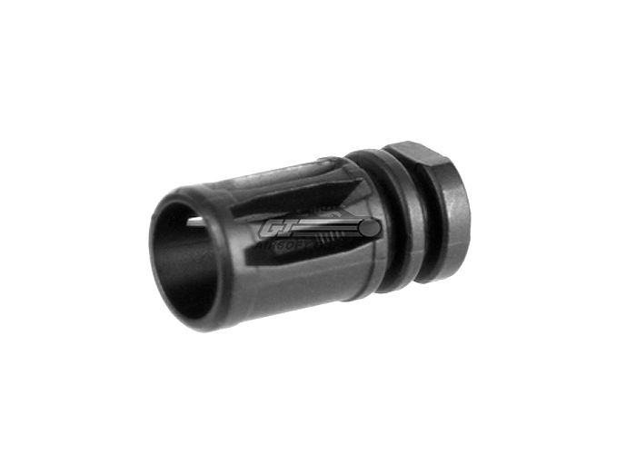 This is a very nice flash hider with ccw 14mm threads it worked perfectly on my G&G Combat Machine. On my gun, I accidently stripped the threads a little but when i got this, i just used wd-40 and a rubber grip to but it on. I am very happy with it and is definetly worth it. It was out of stock here so i bought it on ebay for $15.