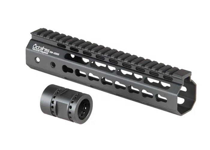 [ST11][34546 / ARES-KM-005S-BK]Keymod hand guards are known to be lightweight and low profile on an airsoft gun. The ARES keymod hand guard has keymod slots on the sides and bottom of the system. Use keymod rail segments to place accessories where you want on the hand guard. On the top resides a 20mm rail section that you can use to attach a sight, optic, or anything else you may desire. The mounting ring and tools are ready for you to install this hand guard onto your AEG platform.