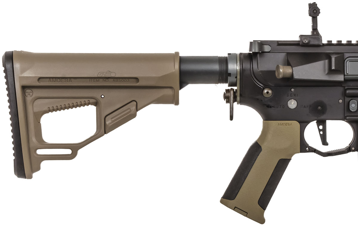 ARES has been a well known manufacturer pushing new and unique airsoft guns out in the market. The Octarms X Amoeba series features the ARES keymod hand guard, Amoeba stock and Amoeba pistol grip. This model is built with a metal receiver for a long lasting build that is not too heavy or too light. The built in ECU ( Electronic Control Unit ) allows the user to program their specified firing modes with the ARES programming unit ( sold separately ). ARES has implemented a quick change spring system known as their Rapid Velocity Tuning System. This system makes is easier to adjust your FPS at the field with out too much hassle from taking out all your internal parts.