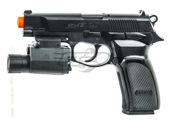 To produce the world's most reliable firearm, BERSA utilizes advanced firearms technologies paired with a history of innovation. Sincs 1958, BERSA has been manufacturing accurate, reliable, and robust handguns of the most superior quality. For many decades, the Argentinian Military, as well as law enforcement officials, around the world, have routinely issued and relied on BERSA handguns as their official service weapon. Since BERSA started manufacturing products half a century ago, it has always been the top priority pf BERSA to provide quality, reliability, ergonomic, and functional detail. In the course of time, BERSA has been able to continually evolve, employing the most skilled gunsmiths and engineers, investing in the most advanced tooling and CNC machines, all resulting in firearms that go above and beyond the most rigorous standards. maintaining an excellent price-performance relation, while investing in the most advanced technology, production methods, and quality assurance controls has helped to make BERSA one of the most respected and prestigious gun manufacturers in the world. As BERSA persistently improve and respond to increasing market demands, BERSA hopes to surpass the expectations of those who choose BERSA firearms. The ASG BERSA Thunder 9 Pro is a very close replica to the real gun counterpart. The ASG Thunder 9 contains licensed trademarks on the left and right side of the slide as well as on the chamber. The grips of the gun are textured to give the user more control of the gun when firing. Unlike the real gun counterpart, the frame and the slide of the ASG Thunder 9 Pro is constructed out of polymer to decrease weight. The lower frame of the gun contains a rail for mounting optics and other accessories. A rail system is great for attaching the accessories you need to help complete your goal during the skirmish. Being powered by CO2 with a fixed slide, this gun will contain a high velocity output.Specifications: