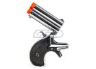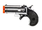 Extremely compact two round pistol the Derringer is a single firing backup weapon. It is small, lightweight, and two BBs are simply loaded by tipping the front up. The gas is stored in the grip and filled at the valve in the bottom of the pistol grip. The Derringer 6mm airsoft replica is made in an excellent chrome finish with a textured grip. Overall, this is a great airsoft gun for the airsoft player and collector alike. This is a great backup to keep in your boot or a small pocket and a last resort gun.