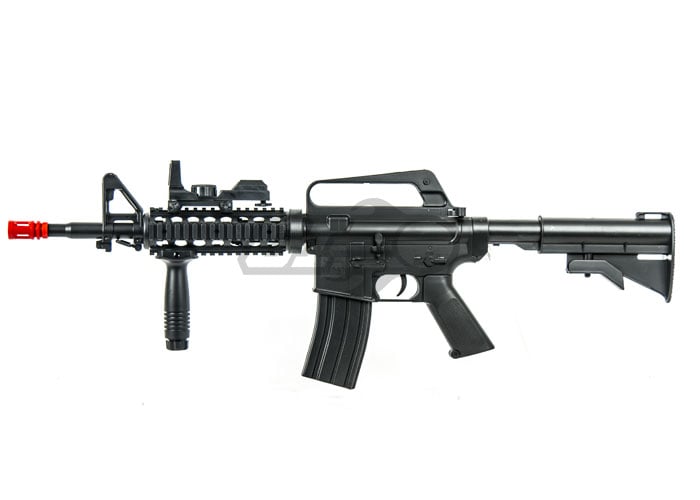 The ASG M15A1 Carbine is an excellent airsoft gun for young and beginning airsoft players. Being that this airsoft gun is spring operated, this would be ideal for quick pick up games or semi only games. The externals are constructed completely out of polymer. With this airsoft gun, you will also receive two magazines, vertical grip and red dot. Overall, this is an excellent player package for the beginning and young airsoft player or for backyard shooting and games.