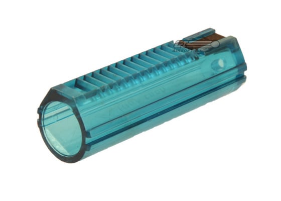 The Action Army High Speed POM Reinforced Piston is an extra strong polycarbonate piston that features a single metal tooth. The second to last tooth on the piston was not molded in the attempt to reduce the amount of stress put on the gears. A strong poly-carb piston, like the Action Army High Speed POM, is arguably better than an aluminum piston because it is significantly more lightweight, which means that it transfers less energy to the gearbox shell, thus reducing the probability of cracking it. It is the perfect option for your high-speed AEG build.