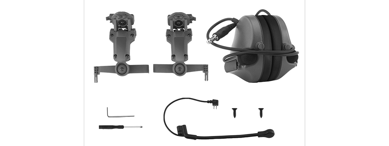[71613 / CA-2414BH]The Airsoft C5 Tactical Communication Helmet Headset by Wosport is a versatile and comfortable communication solution for airsoft enthusiasts. Made from durable Nylon 35 fibre, it features arms which direclt y mounts the muffs to the helmets' ARC rails. The headset features an easy-to-use design for quick stowing and deployment, with earpads crafted for comfort during extended use. The microphone is attachable to either side of the helmet, providing flexibility in use. Its convex-concave button design ensures ease of operation even with gloves on, and its compact design allows for minimal storage space when not in use.