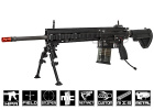Airsoft GI Custom 417 Deadshot Airsoft Gun The Airsoft GI Custom Deadshot Airsoft Gun is another addition to our Custom Line. Based off an H&K 417 by Umarex has been known worldwide to create high performance airsoft guns. This Umarex 417 is the first fully licensed official H&K 417 to hit the market, and it does not disappoint. The receiver features beautifully engraved HK trademarks that are fully licensed by Umarex. The 417 is the 7.62x51 caliber version of the H&K 416 which and is typically designed for DMR roles. The most obvious differences between the 417 and the 416 are the magazine and lower receiver. The magazine of the 417 is much larger then the standard 416 due to the increased caliber size of the real steel rifle, however it does not do much for the airsoft version. The upper and lower receivers are also modified to handle the 7.62x51 cartridge that the real steel rifle shoots. The lower receiver of this AEG also features a color-filled fire selector as well as a highly ergonomic pistol grip which fits very comfortably in the user's hand. Moving onto the stock of this gun you will find that the crane stock on this gun features many improvements over the standard crane stock. First and foremost is the recoil pad, which in airsoft does not serve much of a purpose, but does make the rifle very comfortable to shoulder. The adjustment lever on the stock features a lower profile design which helps prevent the user from engaging the lever accidently. Finally, two sling attachment points are mounted on either side of the stock to allow the user to easily mount a sling. Moving onto the front of the gun you will notice a very solid free float rail system that is sturdily attached to the front of the receiver. The top rail of the Umarex 417 is completely monolithic allowing the user to mount a variety of optics in any position the user desires, and mounted on this monolithic top rail are H&K style iron sights, which are fully adjustable, very durable, and aesthetically pleasing. Internally, the common gearbox components have been removed and replaced with the new Wolverine HPA Airsoft System. This affordable and simple upgrade allows for a much more consistent muzzle velocity as well as decreased overall weight of the rifle. The SMP ( Single Moving Part ) is much more reliable due to less moving components and maintenance over a standard AEG. Overall, this gun is a fantastic addition to Airsoft GI Custom's line up, and is a great choice for players looking for a solid, lightweight DMR platform with completely upgraded internals.