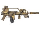 Built off the H&K G36C by KWA, this rifle houses KWA's well known internal powerhouse and reliability right out of the box. The KWA G36C is a replica of the famous compact version of the G36 rifle. The G36 rifle has reached prominence in recent years for its reputation for reliability with the German Army and special operations forces all over the world. The KWA G36C comes as solidly built as the Marui version and includes many of the same features. It has a side folding stock, stackable magazines, sling attachment points, and a carry handle with rails for mounting optics. This is KWA's new 2GX version with much stronger internals and a better hop up system with their 2GX hop up bucking. Externally, the gun has been outfitted with an optic for easier target acquisition, vertical grip for stability, to finish off the appearance with a Knight's Armament QDC Barrel Extension and taclight to assist in low light operations. Lastly, the custom paint work in collaboration with proper BDU's, will allow the user to blend well in different environments.