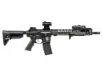 SPR stands for Special Purpose Rifle. Traditionally the military uses this term for a M4/M16 that has been purpose built for longer range shooting, to fill the gap between ranges of a traditional M4 and a Sniper Rifle. The Airsoft GI Custom Glitch M4 is a SPR with a different purpose. The Airsoft GI Custom Glitch M4 is special in the way that it can be used in any scenario! The 14.5 inch barrel is the perfect balance between length and accuracy. At this length, you are able to maximize your accuracy with still being able to maneuver in CQB environments. The Lancer Tactical 13 inch Keymod rail maximizes your rail space while keeping the weight down. For optics, the Lancer Tactical Mini Red / Green Dot Sight give you the perfect view for CQB to longer outdoor ranges. The Tac 9 PEQ-15 has a functional Green Laser, White Light, and IR Lens. Perfect for target sighting and spotting. The UTG Hand Stop give a comfortable grip, paired with the VISM Keymod Covers. The hand stop also doubles as a barricade stop for support when firing from windows or other barricades. The Sentinel Gears Warrior Stock gives adjustability and comfort. Internally, the Classic Army Torque 25k Motor gives great trigger response and rafe of fire! We have installed a traditional trigger assembly for a stable and comfortable platform that everyone knows and loves. The Madbull 6.03mm Inner Barrel will provide amazing accuracy at any range!
