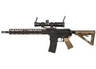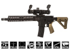 In the vast plains or desert, every trooper needs their weapon. Look no further, the Airsoft GI Custom M4 Desert Trooper is a great choice for outdoor field play. The externals feature an included light weight Madbull KeyMod rail which reduces the chances of high fatigue when using the airsoft gun for a long period of time. Additionally, the Magpul grip and stock provide a unique comfortable fitment on the airsoft gun. The internals of the airsoft gun have been tuned by our Tech Department to handle a sustained high FPS. The included 1.5-4 x 30 Tri-Illuminated Mil-Dot Rifle Scope will assist the shooter in engaging the target at a long or short range with ease. Your opponents wont see what hit them when shot by the Airsoft GI Custom M4 Desert Trooper.