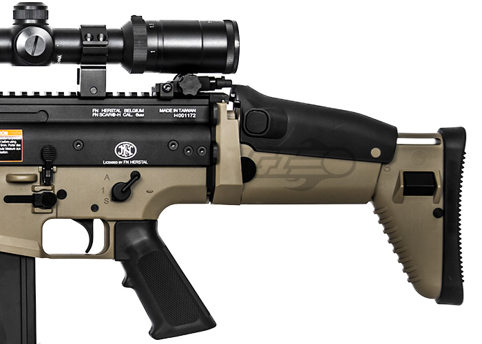 MK17 Takedown Custom Airsoft Gun The MK17 Takedown Custom Airsoft Gun is another custom from the Airsoft GI Tech department featuring the well known and reliable platform. VFC has taken their popular MK17-H, which has been referred to as the best replica of the MK17 currently on the market, and made it even better. The VFC Full Metal FN Herstal SCAR-H MK17 CQC Airsoft Gun is now fully licensed by FN Herstal of Belgium, and is arguably the most realistic SCAR-H replica on the airsoft market. The VFC SCAR-H maintains many of the same features and controls as the M4/M16 series, so the transition for users is simple. In addition, the MK17-H has many improvements over the M4 and the M16. The lower receiver is constructed from sturdy polymers to reduce weight. The magazine release and selector switch are ambidextrous, and the bolt release is functional. Not only is the stock retractable it is side folding and has an adjustable cheek rest, and unlike the many other brands, the wires are not exposed when the stock is folded. Although VFC has been well known to have high performance internals out of the box, the Airsoft GI techs have upgraded it even further for more durability. An integrated and uninterrupted rail runs along the top of the receiver giving the user plenty of room to mount optics and night vision equipment. In addition, there is a rail on the underside of the handguard and two removable rails for each side of the handguard that enable the user to mount accessories like a flashlight or vertical grip. Internally, the piston has been replaced with an Airsoft GI POM Piston. The tappet plate has been upgraded and modified for optimal feeding. To finish off the airsoft gun, a PTS Griffin Barrel Extension and Flash Hider have been installed in conjunction with a variable zoom optic. The MK17 Takedown can be a a definite game changer on the field especially in long distance engagements.