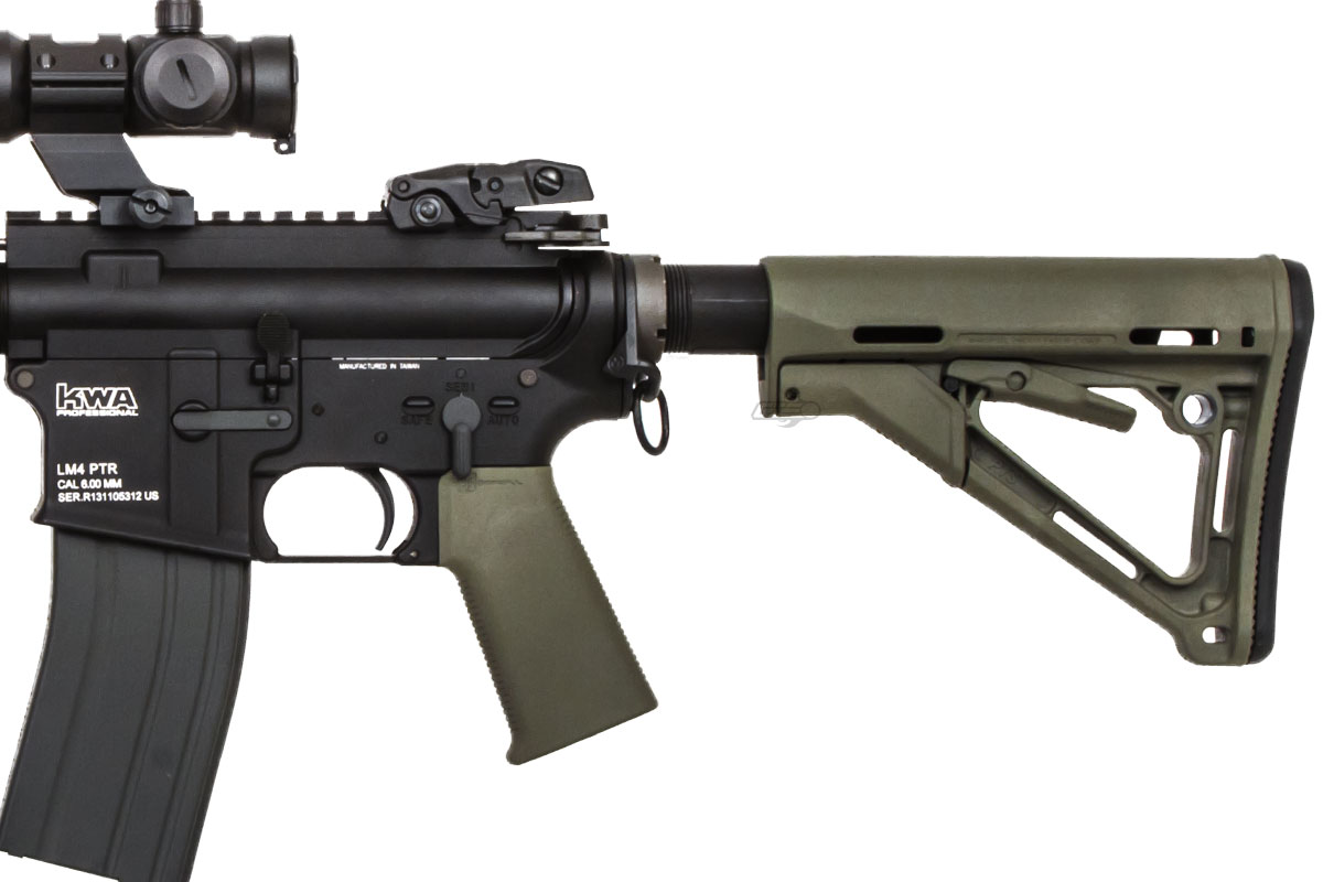 The Custom MOE LM4 Carbine GBB airsoft gun features a ton of external parts from Magpul installed on the well known KWA LM4 GBBR. The KWA LM4 PTR GBBR is a game changer for the airsoft world. The bolt movement is crisp and the recoil is very direct, and feeling that this gun gives you while being fired is unmatched by any other gas blowback M4 on the market. The LM4 PTR is an amazing rifle that has been engineered from the ground up to be the first and last gas blowback M4 that you will ever need to buy. The tech department has tuned up the airsoft gun and to make sure its good to go for you on the field.