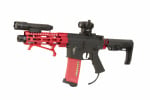 The base gun is a APEX Fast Attack M4A1 Carbine that has been fitted with a Polarstar JACK HPA kit. This gun has modified to have a shorter trigger travel, making increasing the trigger response. The ORGA Magnus 6.13mm Wide Bore utilizes the extra air being fired and makes this gun super accurate! As for the externals; A Lancer Tactical "Needletail" outer barrel, a 7" M-Lok handguard, a G-Force Aluminum hand stop, and a Lancer Tactical Buffer tube (all in red) were added to show off her crimson demon heritage. However what's so great about clappin fools without some fireworks to display your raw power? The techs at GI have given Megumin an AceTech Lighter S mini tracer unit and an Element WMX200 Tactical Weapon Light. And of course, tying it all together is the PTS SpeedQB EPM magazine in red. A custom so cool, it'll have you shouting EXPLOOOOOOOSION!