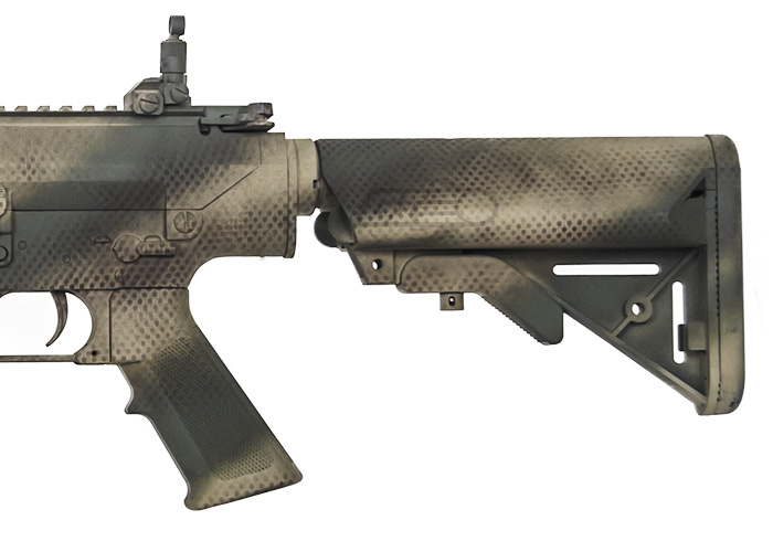 SR25 Unseen Custom Airsoft Gun The SR25 Unseen Custom Airsoft Gun is another custom from the Airsoft GI Tech department featuring the high performance and reliable Echo 1 ER-25K base. The ECHO 1 Full Metal ER-25K Airsoft Gun is another great example of Echo 1's ability to make high quality full metal airsoft guns. The ER25-K is a blend between an effect assault AEG and long range sniper rifle. The crane stock holds the battery and hides wires, it also allows the user to adjust the guns length based on their comfort level. The 10" free float rail system allows for the use of vertical grips and/or bipods. The top rail is uninterrupted and provides a long base for both short range and long range optics. Included with this fantastic gun is a vertical grip and quick detach barrel extension. Internally, the entire gearbox has been upgraded for high output performance. To handle the higher tension spring, Prometheus Torque Gears and a Lonex A1 Torque Motor has been added. Other compression and drive train components The compression components have been replaced with Modify and Lonex parts for maximum air seal in return for a more consistent velocity output. Overall, this high output, high performance reliable platform is a game changer on the field.