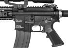 The Airsoft GI PTT Death Adder is another well built rifle with the Action Army URX 3 RIS. The KWA LM4 PTR GBBR is a game changer for the airsoft world and is an excellent base for this build. The LM4 PTR brings together two characteristics of gas blowback rifles that traditionally remain separate, affordability and reliability. The KWA LM4 PTR has taken many years to engineer and assemble and it's finally ready to come to market. Once our techs got their hands on the LM4 they had to turn it into something amazing, and as usual they did. First they took the stock plastic hand guards and swapped them out for the URX 3 rail system. They did this for three main reasons; first off the rail system gives the user the ability to mount a variety of accessories to the gun such as vertical grips, flash lights, cameras or even lasers. The other advantage of the rail is the durability and stability that the rail offers. Typically, a standard plastic hand guard no matter how well made is not extremely durable and can crack or become damaged, that typically does not happen with the Action Army URX 3 Rail. The third and final advantage is the increased length of the hand guard. The 13" interface allows the user to employ a variety of shooting stances to increase the control over the GBBR. To increase the comfort and ergonomics of this GBBR the techs installed the Madbull Troy Battle Axe stock to replace the standard LE style stock. Also included with this Perfect Tactical Trainer is the Vism Evolution Series Scope for engagement at a distance. Internally, the techs have tuned the compression components to produce a higher output velocity. Overall, this is another great build from our tech department featuring the KWA LM4.