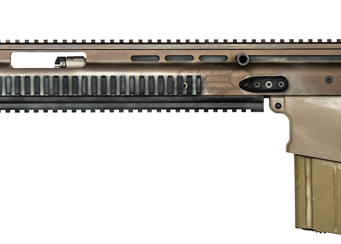 The Airsoft GI Custom Down Range Rifle based off the MK17 by VFC is an extraordinary addition to our Extreme Custom Armory Line. VFC has taken their popular MK17-H, which has been referred to as the best replica of the MK17 currently on the market, and made it even better. The VFC Full Metal FN Herstal SCAR-H MK17 SSR Airsoft Gun is now fully licensed by FN Herstal of Belgium, and is arguably the most realistic SCAR-H replica on the airsoft market. The VFC SCAR-H SSR maintains many of the same features and controls as the M4/M16 series, so the transition for users is simple. In addition, the MK17-H SSR has many improvements over the M4 and the M16. The lower receiver is constructed from sturdy polymers to reduce weight. The magazine release and selector switch are ambidextrous, and the bolt release is functional. Not only is the stock retractable it is side folding and has an adjustable cheek rest, and unlike the many other brands, the wires are not exposed when the stock is folded. As if all of that wasn't enough, An integrated and uninterrupted rail runs along the top of the receiver giving the user plenty of room to mount optics and night vision equipment. In addition, there is a rail on the underside of the handguard and two removable rails for each side of the handguard that enable the user to mount accessories like a flashlight or vertical grip. The internals of this rifle have been upgraded to provide extensive amount of durability due to the higher output. Some of the main drivetrain components such as the motor, gears, and bearings have been replaced with Lonex performance components. The piston has been replaced with an Airsoft PE POM Piston. To finish off the rifle, the inner barrel has been replaced with a wide bore in conjunction with a Maple Leaf RTX nub for increased accuracy and range performance.