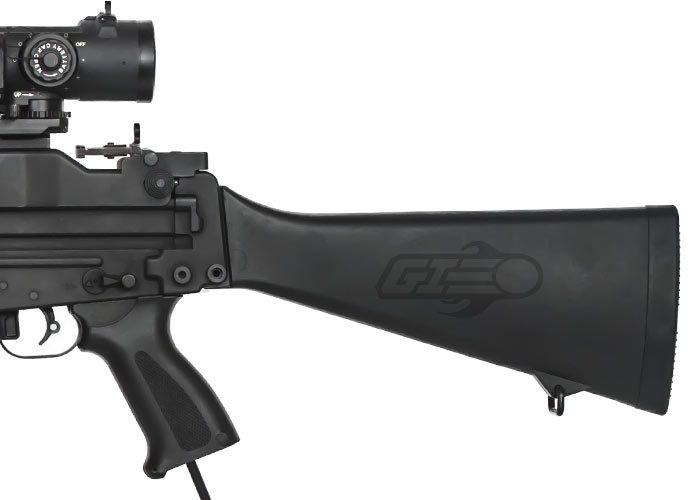 The Airsoft GI Extreme Custom Armory Stryker Airsoft Gun is another addition to our Extreme Custom Armory ( ECA ) Line. The design of this airsoft gun is especially ideal to fulfill the support class role and suppressive fire. The base gun used for this build is the MK23 Machine Gun by G&P. Out of the box, this airsoft gun was designed to already perform exceptionally well under many situations. However, has been upgraded to perform better even further. To have constant suppressive fire requires efficiency. The main drive train components have been replaced and fitted with a Gen 3. Polar Star Fusion engine. With less moving parts and always a constant flow of air will provide the efficiency and rate of fire needed. Additionally, the entire system is designed to adjust the rate of fire as well as muzzle velocity output. To increase range and accuracy, the popular Magic Box Miracle Barrel in conjunction with the propper Hop Up Nub for a straighter trajectory. With these components, this rifle produces a sustained rate of fire keeping heads down on the field.
