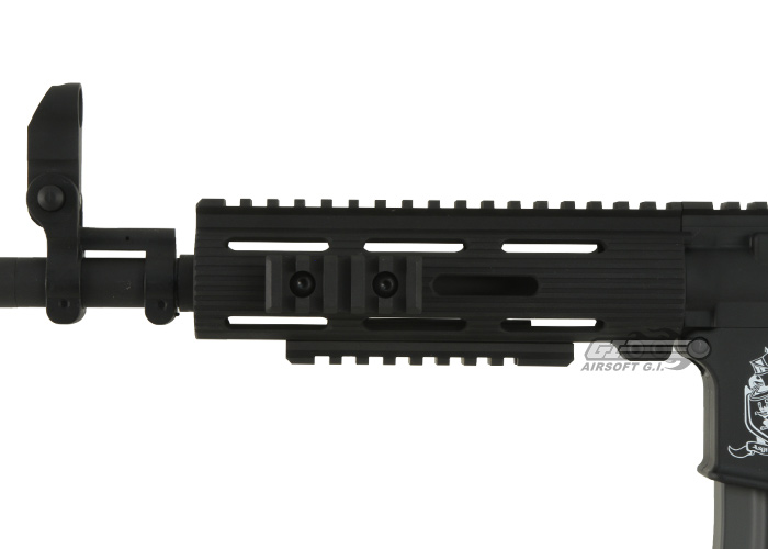 Never before have we built a gun with such a high value per dollar ratio. The base gun for the Airsoft GI G4-A3 SPEC V Carbine is a special Combat Machine M4 Blowback with a crane stock that's wired to the back. The brilliant techs at Airsoft GI have fitted this fine gun with the 7 inch Madbull VTAC Extreme Battle Rail, a 10.5 inch outer barrel, and flip-up front and rear sights. As a result, the final product is a field-range carbine with unique looks and functionality. This is apart of the famous line up of guns that are manufactured by Airsoft GI. We've worked out a special program with Combat Machine to build us a special pneumatic blowback M4 with a crane stock, sling mount, and the wires to the back, so we can eliminate the need for a PEQ box and keep a clean look. The Combat Machine was carefully chosen for their high quality, reliability and incredible value. We've dropped the G4 straight onto the ground from 8ft and 9ft with no visible damage to the body, this is the strongest plastic receiver on the market. Additionally, with the innovation and imagination from the Airsoft GI technical team we are building some of the highest quality guns that money can buy.