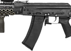 The Airsoft GI PTT Drago is one of the few custom rifles based off the KWA AKG 74M. The KWA AKG-74M is an ATF approved gas blowback AK style rifle that was designed to accurately simulate the AK platform. It features a full metal alloy receiver and high impact polymer handguards, pistol grip, and full folding stock. An AK side rail mount on the receiver allows users to expand their platform with AK specific mounts and accessories. Realistic construction means that the rifle functions and operates identically to its real firearm counterpart. The blank fire mode built in the AKG-74 magazine allow users to train safely without chambering a round. Powered by the KWA Force Velocity engine, the KWA AKG-74M is a strong reliable rifle for those interested in training with the AK platform. Once our techs were able to get their hands on this amazing rifle, different possibilities for custom setups came into mind. Instead of the traditional AK handguard, a real firearm Troy Industries AK Rail was installed to offer the user options for mounting rails and other accessories. Accessories such as the included Magpul Vertical Grip, VFC Tactical Light, and Troy Industries Squid Rail Covers. Last but not least, the Magpul MOE Grip has been installed for more comfort when firing due to the straighter angle. Overall a well built and versatile rifle for multiple situations.