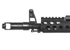 The Veritas Custom build off the E&L AK line proves to be an ideal platform to serve as a training rifle for your real firearm counterpart. E&L creates their AK AEGs in the same process used to create the airsoft gun's firearm counterparts; however, E&L uses a process which changes the stamped steel AK receivers from a firearm component into a shell capable of accepting a Version 3 Gearbox. E&L is focused on making their line of airsoft guns as aesthetically realistic as possible. E&L Airsoft has teamed up with other companies in the airsoft industry to produce high performance and high quality internals for their AEGs. Fitted on this rail system is a Troy Industries AK47 rail for real firearms. On point weight distribution and function. Internally, the piston and motor have been replaced with Lonex aftermarket performance components to provide a more consistent air seal, higher rate of fire, and quicker trigger response. Overall, this upgraded rifle is an ideal design and function for those looking to train in the comfort and safety of their own home.