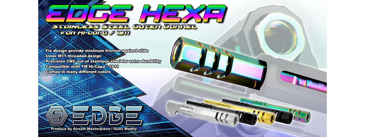 Airsoft Masterpiece Edge "HEXA" Stainless Steel Outer Barrel for 5.1 Hi Capa (Silver)