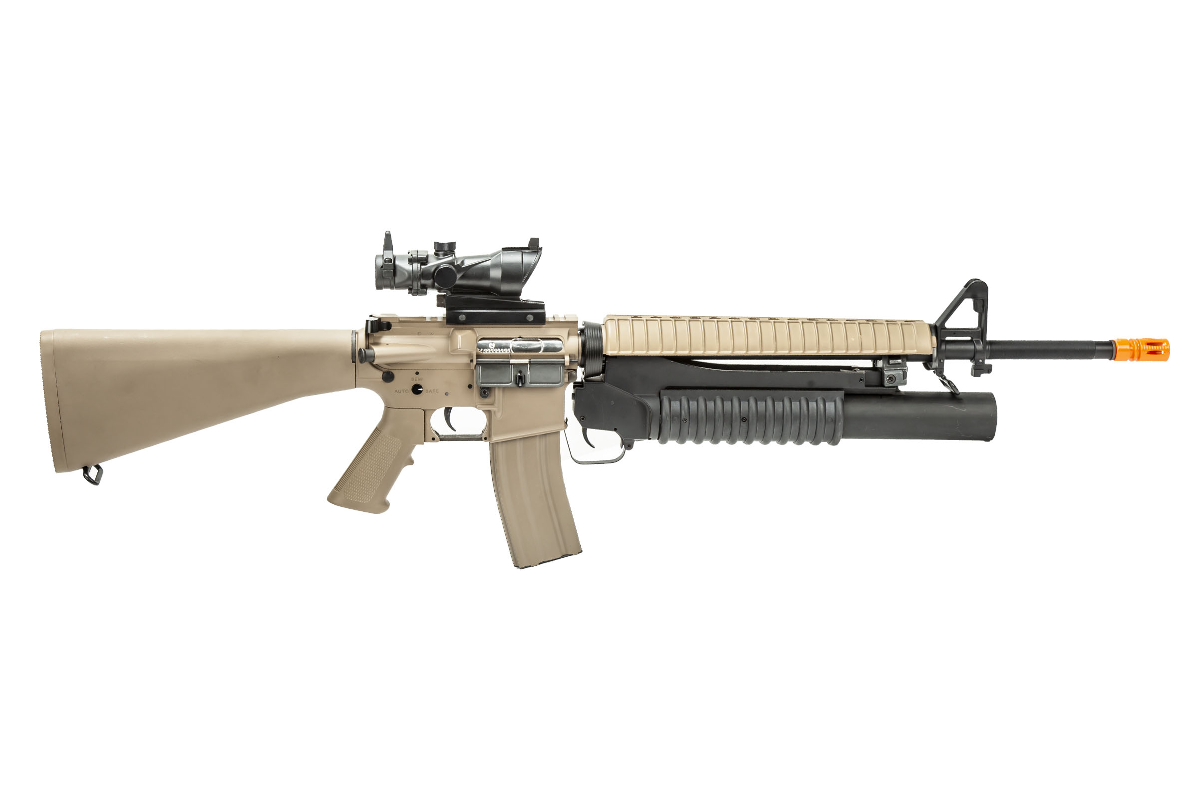 We took a G&G TR16 M16 replica, and dressed it up to the nines with a red/green dot sight and and underslung Classic Army Grenade launcher for maximum force multipliers. Old school style now meets current day performance.