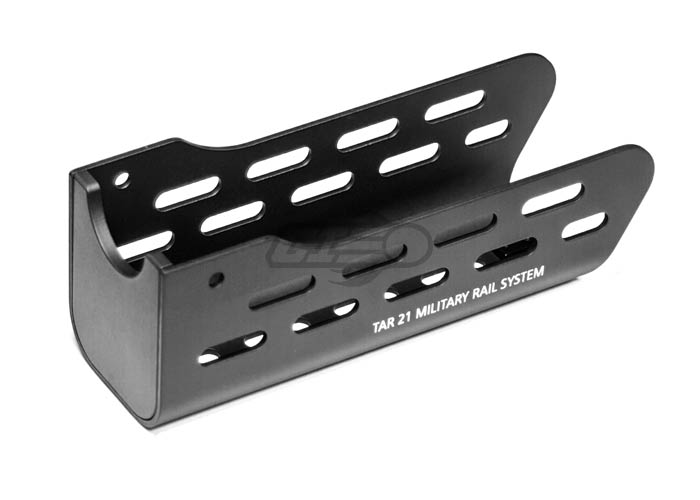 The Angry Gun Tavor Rail System for AEG is a direct replacement for the removable hand guard for the Tar-21 series. The modular design of this rail system means that the rail segments can be attached based off the user preferences, which cuts down on weight. Full metal construction mean that both the rails and the frame will be sturdy. Adding rails onto your airsoft gun will allow you to attach tactical accessories such as vertical grips, flashlights, and lasers. This rail system should fit ARES, S&T, & Elite Force Tavor Tar-21 series airsoft rifles.