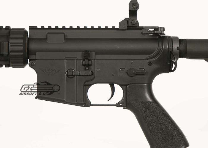 As for external parts, it features a polymer crane stock, all metal body, all metal RIS, and polymer pistol grip.