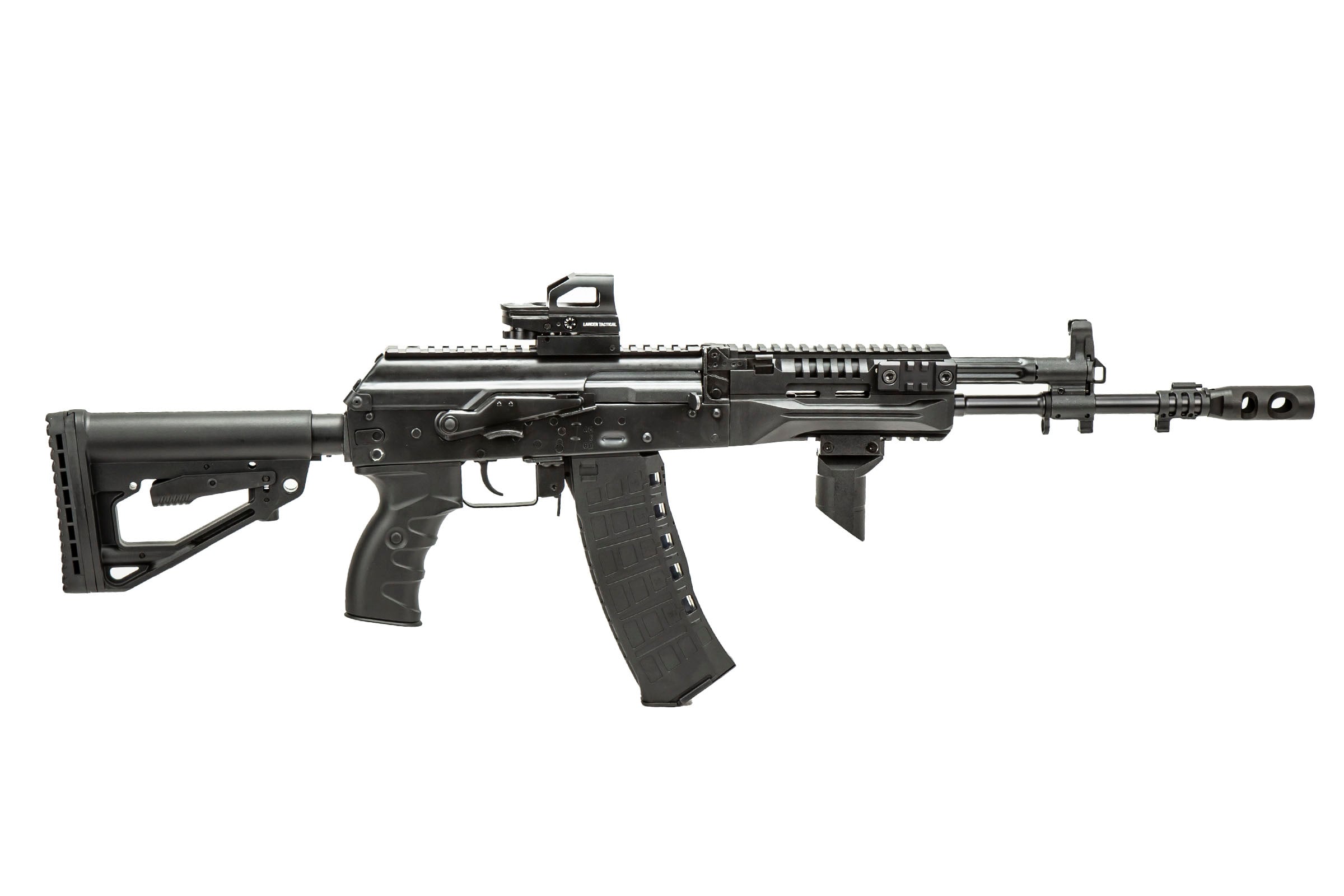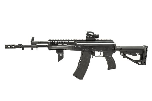 This particular AK12 is part of the Field Ready Combo Lineup, meaning it will come fully decked out with all the accessories you need to tackle the fields and look cool! For added comfort we added an LCT Z-Series Rk-6 foregrip. For some added realism, the original flash hider was swapped out for an LCT AK AMD style metal flash hider. For faster target acquisition, an LT 4 reticle reflex sight was added to the the top of the upper receiver. Save yourself both time and effort with these super convenient Field Ready Combos.